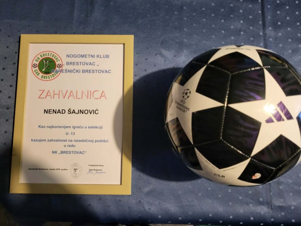 Učenik Nenad Šajnović proglašen je najkorisnijim igračem u mlađim uzrastima nogometnog kluba NK Brestovac.
